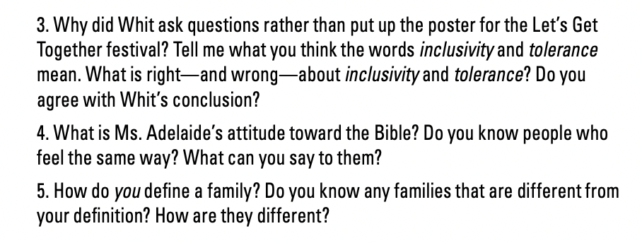 D.L. : Yeah. And so the whole thing is teaching kids why tolerance in general is so bad. What’s interesting is that they don't mention the words like homosexuality. They use these other words like tolerance and activists and all this stuff to teach these little kids that tolerance is not okay. And that we actually need to fight back against tolerance with everything we have. It ends with the town not doing the tolerance parade and everybody's happy and I just thought oh my word . . . and in your book you talk about your dad producing that series right after you came out to him.