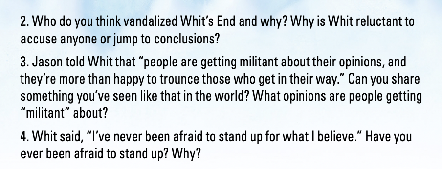(Below are various excerpts from the discussion questions at the end of certain episodes of The Ties That Bind)