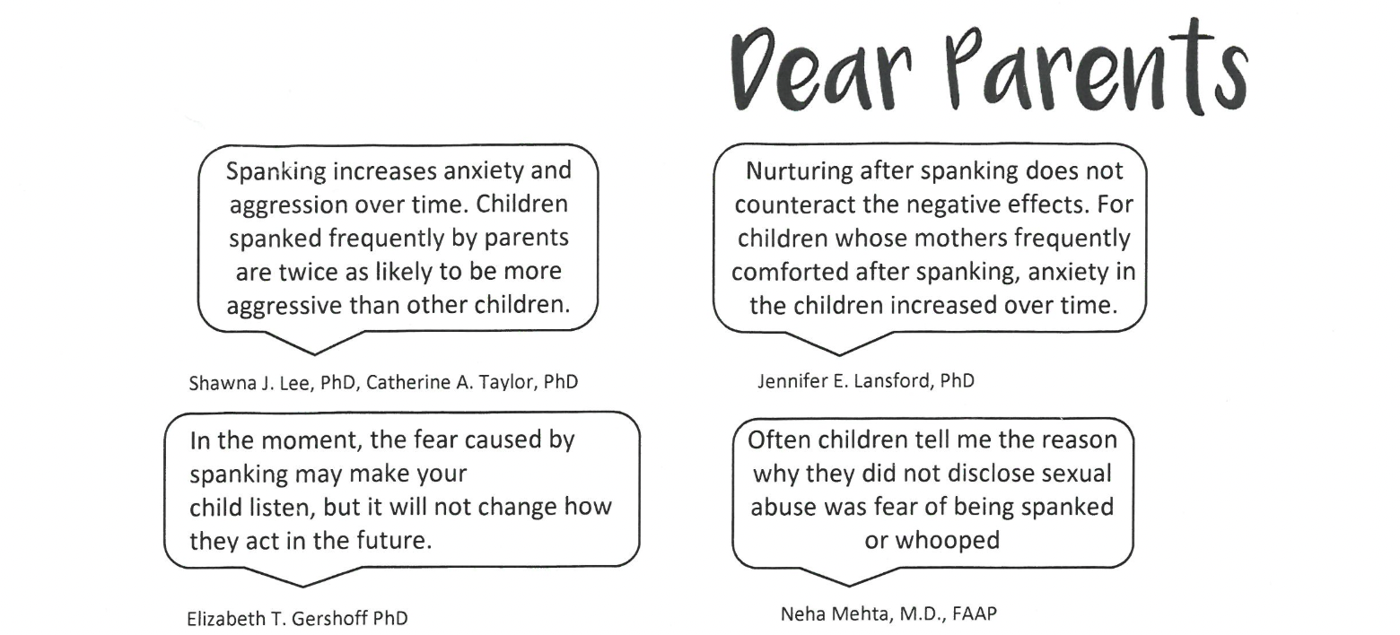 Gershoff ET, Grogan-Kaylor A. Spanking and child outcomes: Old controversies and new meta-analyses. J Fam Psychol. 2016 Jun 30(4):453-69. ↩
