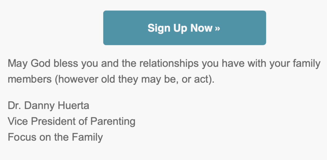 This email is part of a campaign by Focus on the Family’s Vice President of Parenting, Dr. Danny Huerta, written to parents whose adult children had gone no-contact or low-contact.